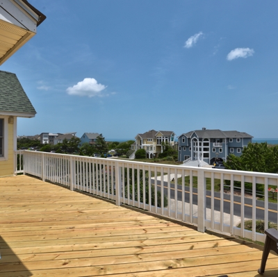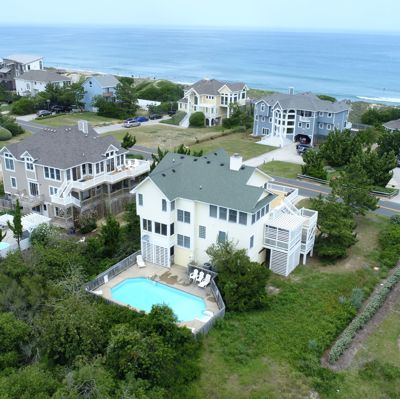 Welcome to Dream Catcher, a semi oceanfront home located in the Whalehead community in Corolla. This well maintained 5 bedroom, 4 bathroom home has beautiful ocean views, easy beach access (only 420 feet away), private heated pool and a hot tub. Top level features open concept living, dining, kitchen area plus a den separated by a double-sided, wood burning fireplace (lots of room to spread out) and a bedroom with a semi private bathroom. Plenty of sundeck (brand new) to enjoy your morning coffee or afternoon glass of wine. Mid-level has 4 more bedrooms, laundry room, more decks and a pergola with a covered hot tub. Exterior amenities also include outdoor shower, basketball hoop and dry entry. Great rental income